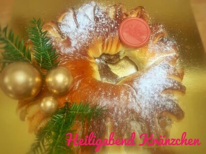 🥮 Unser Heiligabend Kränzchen als idealer Nachtisch oder Mitternachts-Leckerbissen: saftiger Hefeteig gefüllt mit cremiger Nussfüllung, weihnachtlich dekoriert