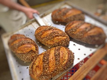 Aus Weizen, Emmer & Roggen, mit einem Cuveé-Sauerteig, knuspriger Kruste und saftigem Inneren.