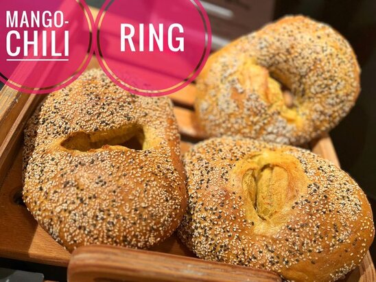 Fluffiger Dinkelteig, Mangosaft & Mangochutney, grobe Chiliflocken, ein Hauch Curry und die knusprig angeröstete Sesamkruste machen das 💍-Brot zu einem besonderen Genuss!