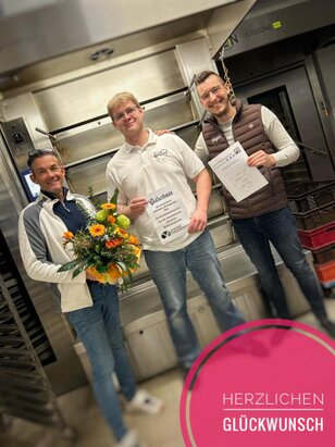 Wir gratulieren unserem frisch gebackenen Bäckergesellen Tom zur bestandenen Gesellenprüfung 🎉🍾