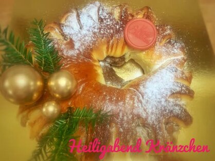 🥮 Unser Heiligabend Kränzchen als idealer Nachtisch oder Mitternachts-Leckerbissen: saftiger Hefeteig gefüllt mit cremiger Nussfüllung, weihnachtlich dekoriert