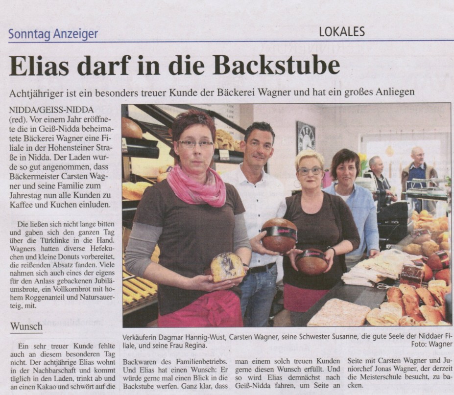 Eine weitere Filiale – Wagners haben bereits eine in Florstadt-Stammheim und beliefern täglich mit Verkaufswagen schon früh morgens die Bürger in vielen Ortschaften mit frischen Backwaren – bedeutet eine Menge zusätzlicher Arbeit. Bäckermeister Carsten Wagner weiß aber nicht nur seine gesamte Familie, zu der neben Frau Regina, Sohn Jonas und Tochter Lea auch die Eltern Doris und Ewald sowie seine Schwester Susanne gehören, hinter sich, sondern auch seine Mitarbeiter. 15 Angestellte in der Backstube und im Verkauf haben ihn ermuntert, sich zu vergrößern. „Unsere Mitarbeiter lieben ihren Job. Und stellen täglich ihr handwerkliches Geschick unter Beweis“, sagt Carsten Wagner, der sein Team „neben unseren zufriedenen Kunden als größtes Kapital“ ansieht.